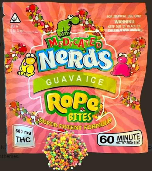 Indulge in a refreshing twist on classic cannabis edibles with Guava Ice Medicated Nerd Rope Bites, infused with a bold 600mg of premium THC. These fruit inspired bites combine the exotic sweetness with a potent finish, all wrapped in a crunchy, chewy rope format that delivers flavor and a punch in every bite.
